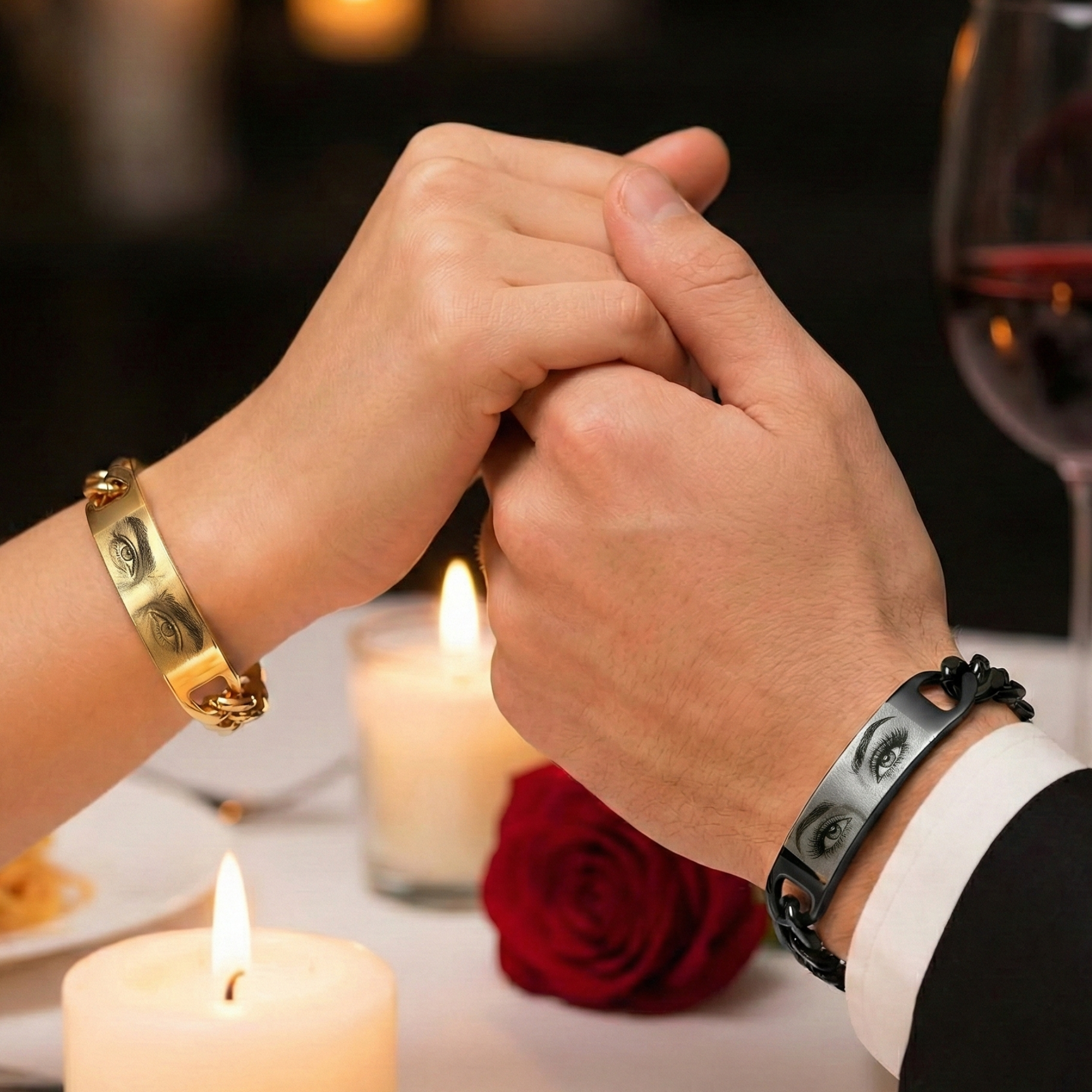 Bracelet Personnalisé Photo Œil & Texte | Gravure Double Face | Acier Inoxydable (3 Couleurs) | Cadeau Saint-Valentin Unique